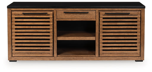 Signature Design by Ashley®Double down on casual chic with the two-tone look of this TV stand. Its warm brown and matte black finishes reflect your eye for modern design. The...