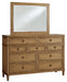 Details B895B6: Includes upholstered panel headboard, footboard, rails and slats, Made with hardwood solids, hickory veneer and MDF substrates, Light brown wood-tone finish, Polyester upholstery, Foundation/box spring required, sold separately, Mattress available, sold separately, Assembly required, B895B1: Includes dresser and mirror, Made with hardwood solids, hickory wood veneer and MDF substrates, Light brown wood-tone finish, Dark bronze-tone drawer pulls, 9 drawers with fully finished interior, dovetail construction and heavy duty ball-bearing side glides (top drawers felt lined), Mirror attaches to back of dresser, B895-46: Made with hardwood solids, hickory wood veneer and MDF substrates, Light brown wood-tone finish, Dark bronze-tone drawer pulls, 6 drawers with fully finished interior, dovetail construction and heavy duty ball-bearing side glides (top drawers felt lined), B895-93: Made with hardwood solids, hickory wood veneer and MDF substrates, Light brown wood-tone finish, Dark bronze-tone drawer pulls, 3 drawers with fully finished interior, dovetail construction and heavy duty ball-bearing side glides (top drawer felt lined), 110V power supply with USB-A and USB-C charging ports, Power cord included; UL Listed,
