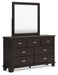 | Details | B441B2: Includes panel headboard, footboard, rails and slats, Made with hardwood solids, engineered wood veneer and MDF substrates, Dark brown finish, Floating panel headboard, Picture frame footboard, Foundation/box spring required, sold separately , Mattress available, sold separately, Assembly required, B441B1: Includes dresser and mirror, Made with hardwood solids, engineered wood veneer and MDF substrates, Dark brown finish, Metal bar pulls with bright nickel-tone finish, 7 smooth-gliding drawers with dovetail construction and metal center guides, Drawer interiors are lined with a wood grain laminate for a clean, finished look, Top moulding on dresser, Mirror attaches to back of dresser, B441-46: Made with hardwood solids, engineered wood veneer and MDF substrates, Dark brown finish, Metal bar pulls with bright nickel-tone finish, 5 smooth-gliding drawers with dovetail construction and metal center guides, Drawer interiors are lined with a wood grain laminate for a clean, finished look, Top moulding, | |