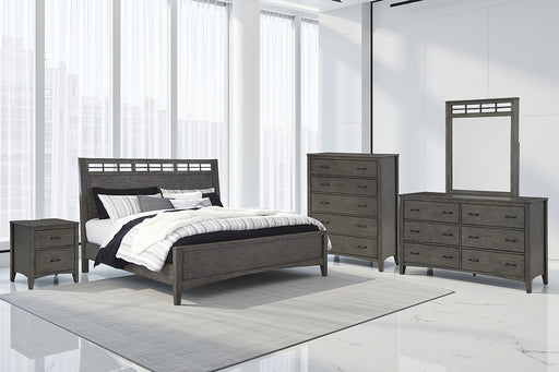 Ashley®Clean lines lend sophistication and structure to this queen panel bed. Its complex rich grayish brown finish, slats set in a contemporary herringbo...