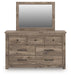 Classically chic. This dresser with mirror marries traditional design with modern accents. Its deep brown finish recalls the authentic touch of hickory grain for a rich look and feel. Assorted drawers neatly store your essentials in charming fashion. Sincere in its styling, this piece sets the scene for a warm, welcoming vibe in your bedroom.