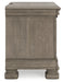 Details | B924B4: Includes panel headboard and sleigh footboard with rails, Made with hardwood solids, birch veneer and MDF substrate, Light gray finish enhances the natural wood grain, Foundation/box spring required, sold separately, Mattress available, sold separately, Assembly required, B924B1: Includes dresser and mirror, Made with hardwood solids, birch veneer and MDF substrate, Light gray finish enhances the natural wood grain, Ring pull hardware, 9 drawers with fully finished interiors, dovetail construction and ball-bearing side glides, Jewelry drawer conveniently located in the center valance, Mirror attaches to back of dresser, B924-93: Made with hardwood solids, birch veneer and MDF substrate, Light gray finish enhances the natural wood grain, Ring pull hardware, 3 drawers with fully finished interiors, dovetail construction and ball-bearing side glides, Small accessory drawer conveniently located in the upper valance, 110V power supply with dual USB charging ports, Power cord included; UL Listed, | |