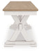 Busy breakfasts and family dinners get a dose of modern farmhouse flair with this dining bench. Its two-tone finish contrasts a light butcher block hue with antiqued white for an utterly charming effect. An effortless seating solution, the bench can tuck under your table to give you extra space to maneuver through the dining room.