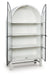 Details | Made with hardwood solids, mango wood veneer, MDF substrate and metal, Antiqued white finish, Dark pewter-tone knobs, 2 glass-front doors with black metal frames, 3 fixed shelves, Assembly required | |