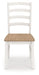 Busy breakfasts and family dinners get a dose of modern farmhouse flair with this dining chair. Its two-tone finish contrasts a light butcher block hue with an antiqued white frame for an utterly charming effect. A contoured seat elevates the comfort level. Complete with a ladderback design, it's an effortless seating solution with chic character.