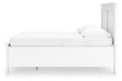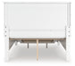 Details | Includes panel headboard, storage footboard, rails and roll slats , Made with hardwood solids and MDF substrate, Side rails feature laminated solid hardwood slat support rails (or LVL) with glued and screwed blocking for added strength , White painted finish, Round metal drawer knobs with satin nickel-tone finish, Tapered feet, 2 smooth-gliding drawers in footboard , Bed does not require additional foundation/box spring; accommodates most zero clearance adjustable bases with the addition of a bunkie board , Mattress available, sold separately, Assembly required | |