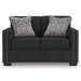 This stunning loveseat leaves a lasting impression. Its cozy cushions, chic coal-colored upholstery and striking nailhead trim are a perfect blend of comfort and contemporary design. And here’s the showstopper—ambient red, white and blue LED lighting along the loveseat's base. The look is simply wow.