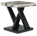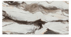 Details | Includes coffee table and 2 end tables, Made with decorative paper laminate and MDF substrate, Faux white marble top with brown veining, Base with dark replicated wood grain, Coffee table with casters for easy mobility, Assembly required | |