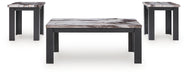 Details | Includes coffee table and 2 end tables, Made with decorative paper laminate and MDF substrate, Top with faux marble laminate, Base with dark replicated wood grain finish | |