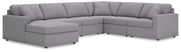 Details | Includes 6 modular pieces: left-arm facing corner chaise, 3 armless chairs, wedge and right-arm facing corner chair, "Left-arm" and "right-arm" describe the position of the arm when you face the piece, Modular pieces can float anywhere; sides are finished (with no connectors), Corner-blocked frame, Loose reversible seat and back cushions; high-quality foam cushions wrapped in poly fiber, Throw pillows included; soft polyfill, Polyester upholstery, Next-Gen Nuvella™ is a family-friendly fabric that is soft, easy to clean, stain-resistant and durable, Easy-to-remove zippered covers for machine washing, Clean fabric with mild soap and water, let air dry; for stubborn stains, use a solution of 4 oz. bleach to 28 oz. water, Non-skid legs, Platform foundation system resists sagging 3x better than spring system after 20,000 testing cycles by providing more even support, Smooth platform foundation maintains tight, wrinkle-free look without dips or sags that can occur over time with sinuous spring foundations | |