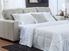 Details | Corner-blocked frame, Attached back and loose seat cushions, High-quality foam cushions wrapped in poly fiber, 100% top grain leather covers inside areas such as the back, seat and arm cushions; skillfully matched faux leather covers the remaining areas, Due to its natural origin, real leather can show individual characteristics such as healed scars, growth marks, grain variation and shade variation, Natural variations make each hide unique and do not detract from the wearing qualities of leather, Exposed feet with faux wood finish, Included bi-fold queen memory foam mattress sits atop a supportive steel frame, Memory foam provides better airflow for a cooler night’s sleep, Memory foam encased in damask ticking | |