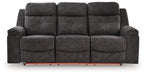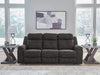 Seamlessly blend contemporary aesthetics and uncompromising comfort with this reclining sofa. Its handsome charcoal-hued faux leather has a tailored appeal thanks to sizable stitching details. As for modern convenience? The simple one-pull reclining and ambient LED lighting encourage you to relax in style.