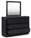 Details | B768B5: Includes headboard, footboard and rails, Made with pine solids, veneers and engineered wood substrate, Textured black wood stain with waxy topcoat, Extra wide rails for a bench-like wrap around, Foundation/box spring required, sold separately, Mattress available, sold separately, Assembly required, B768B1: Includes dresser and mirror, Made with pine solids, veneers and engineered wood substrate, Textured black wood stain with waxy topcoat, Hardware-less design, 6 drawers with fully finished interiors, dovetail construction and ball-bearing side glides (top drawers felt lined), Mirror attaches to back of dresser, | |