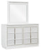 Details | B822B5: Includes king/California king upholstered headboard, storage footboard, rails and roll slats, Made with solid wood components, MDF substrate and decorative laminate, White lacquer finish, Vertical metal drawer pulls, Faux leather upholstery, Built-in LED lighting with 3-way dimmer switch, 2 drawers with fully finished interior, dovetail construction and ball-bearing side glides, Drawers with rhinestone frames; textured laminate drawer fronts, Power cord included; UL Listed, Bed does not require additional foundation/box spring; accommodates most zero clearance adjustable bases with the addition of a bunkie board, Mattress available, sold separately, Assembly required, B822B1: Includes dresser and mirror, Made with solid wood components, MDF substrate and decorative laminate, White lacquer finish, Vertical metal drawer pulls, Built-in LED lighting with 3-way dimmer switch, 6 drawers with fully finished interior, dovetail construction and heavy duty ball-bearing side glides, Drawers with rhinestone frames; textured laminate drawer fronts, Mirror attaches to back of dresser, Power cord included; UL Listed, B822-92: Made with solid wood components, MDF substrate and decorative laminate, White lacquer finish, Vertical metal drawer pulls, Built-in LED lighting with 3-way dimmer switch, 2 drawers with fully finished interior, dovetail construction and heavy duty ball-bearing side glides, Drawers with rhinestone frames; textured laminate drawer fronts, 110V power supply with USB-A and USB-C charging ports, Power cord included; UL Listed, | |