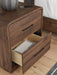 Details | Made with MDF substrates and decorative paper laminate, Replicated walnut wood grain with high-low contrast for a rich brown wood tone, Hardware with black finish, 2 smooth-gliding drawers with English dovetail construction and center mount drawer guides, Drawer interiors lined with decorative wood grain paper laminate | |