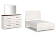 Details B1190B4: Includes headboard, footboard and rails, Made of engineered wood (MDF/particleboard) and decorative laminate, White rustic finish with replicated cedar grain, Foundation/box spring required, sold separately, Mattress not included, sold separately, Assembly required, Bed is compatible with an adjustable base, B1190B1: Includes dresser with mirror, Made of engineered wood (MDF/particleboard) and decorative laminate, White rustic finish with replicated cedar grain, Rustic gray planked replicated oak grain with authentic touch, 6 smooth-gliding drawers with faux linen lining, Large scale dark colored handles, Mirror attaches to back of dresser, Assembly required,