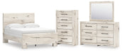Lawroy Full Panel Bed with Mirrored Dresser and Chest