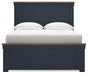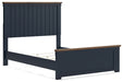 Details | B414B3: Includes panel headboard, footboard, rails and slats, Made with hardwood solids, mindi wood veneer and MDF substrates, Two-tone finish features a dark slate blue with a light brown wood-tone top, Foundation/box spring required, sold separately, Mattress available, sold separately, Assembly required, B414B1: Includes dresser and mirror, Made with hardwood solids, mindi wood veneer and MDF substrates, Two-tone finish features a dark slate blue with light brown wood-tone top, Nickel-tone metal knobs, 6 drawers with fully finished interior, dovetail construction and heavy duty ball-bearing side glides, Mirror attaches to back of dresser, B414-45: Made with hardwood solids, mindi wood veneer and MDF substrates, Two-tone finish features a dark slate blue with a light brown wood-tone top, Nickel-tone metal knobs, 4 drawers with fully finished interior, dovetail construction and heavy duty ball-bearing side glides, | |
