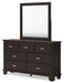 Details B441B4: Includes panel headboard, footboard, rails and slats, Made with hardwood solids, engineered wood veneer and MDF substrates, Dark brown finish, Floating panel headboard, Picture frame footboard, Foundation/box spring required, sold separately , Mattress available, sold separately, Assembly required, B441B1: Includes dresser and mirror, Made with hardwood solids, engineered wood veneer and MDF substrates, Dark brown finish, Metal bar pulls with bright nickel-tone finish, 7 smooth-gliding drawers with dovetail construction and metal center guides, Drawer interiors are lined with a wood grain laminate for a clean, finished look, Top moulding on dresser, Mirror attaches to back of dresser, B441-46: Made with hardwood solids, engineered wood veneer and MDF substrates, Dark brown finish, Metal bar pulls with bright nickel-tone finish, 5 smooth-gliding drawers with dovetail construction and metal center guides, Drawer interiors are lined with a wood grain laminate for a clean, finished look, Top moulding, B441-92: Made with hardwood solids, engineered wood veneer and MDF substrates, Dark brown finish, Metal bar pulls with bright nickel-tone finish, 2 smooth-gliding drawers with dovetail construction and metal center guides, Drawer interiors are lined with a wood grain laminate for a clean, finished look, Top moulding,