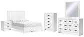 Details | B427B4: Includes full panel headboard, footboard, rails and slats, Made with hardwood solids, okoume veneer and MDF substrates, White finish, Foundation/box spring required, sold separately, Mattress available, sold separately, Assembly required, B427B1: Includes dresser and mirror, Made with hardwood solids, okoume veneer and MDF substrates, White finish, 6 drawers with dovetail construction and metal center guides, Hardware with dark finish, Drawer interiors are lined with a wood grain laminate for a clean, finished look, Mirror attaches to back of dresser, B427-46: Made with hardwood solids, okoume veneer and MDF substrates, White finish, 5 drawers with dovetail construction and metal center guides, Hardware with dark finish, Drawer interiors are lined with a wood grain laminate for a clean, finished look, B427-92: Made with hardwood solids, okoume veneer and MDF substrates, White finish, 2 drawers with dovetail construction and metal center guides, Hardware with dark finish, Drawer interiors are lined with a clean wood grain laminate for a clean, finished look, | |