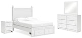 Mollviney Full Panel Storage Bed with Mirrored Dresser and Nightstand