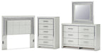 Zyniden Full Upholstered Panel Headboard with Mirrored Dresser and Chest