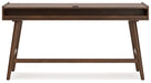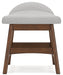 Details H615-44: Made with rubberwood solids, mango wood veneer and MDF substrate, Medium brown natural wood-tone finish, 3 drawers with fully finished interior, dovetail construction and ball-bearing side glides, Cutout for cord management, Open raceway for power cord management, Round tapered legs, H615-01: Made with solid hardwood frame, Medium brown natural wood-tone finish, Polyester upholstery, Foam cushion, H615-70: Made with rubberwood solids, mango wood veneer and MDF substrate, Medium brown natural wood-tone finish, 5 fixed shelves, Round legs,
