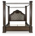 Details | B947B10: Includes upholstered poster headboard panel, poster footboard panel, rails, slats, posts and canopy , Made with hardwood solids, oak veneer, MDF substrates and cast resin components, Dark brown finish, Metal canopy, Foam headboard cushion with polyester upholstery, Measure room, including ceiling height, to ensure bed clears fans and light fixtures, Foundation/box spring required, sold separately, Mattress available, sold separately, Assembly required, B947B1: Includes dresser and mirror, Made with hardwood solids, oak and ash swirl veneers, MDF substrates and cast resin components, Dark brown finish, 6 smooth-gliding drawers with dovetail construction (top drawer felt lined), Drawer pulls with antiqued goldtone finish, Mirror attaches to back of dresser, | |