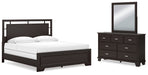Details | B441B8: Includes panel headboard, footboard, rails and slats, Made with hardwood solids, engineered wood veneer and MDF substrates, Dark brown finish, Floating panel headboard, Picture frame footboard, Foundation/box spring required, sold separately , Mattress available, sold separately, Assembly required, B441B1: Includes dresser and mirror, Made with hardwood solids, engineered wood veneer and MDF substrates, Dark brown finish, Metal bar pulls with bright nickel-tone finish, 7 smooth-gliding drawers with dovetail construction and metal center guides, Drawer interiors are lined with a wood grain laminate for a clean, finished look, Top moulding on dresser, Mirror attaches to back of dresser, | |