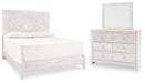 Details | B181B10: Includes headboard, footboard and rails, Made of engineered wood (MDF/particleboard) and decorative laminate, Whitewash replicated worn through paint with authentic touch, Headboard with adjustable height, Mattress not included, sold separately, Foundation/box spring required, sold separately, Assembly required, Bed is compatible with an adjustable base, B181B8: Dresser with mirror, Made of engineered wood (MDF/particleboard) and decorative laminate, Whitewash replicated worn through paint with authentic touch, Hardware features a worn-through painted effect, 6 smooth-gliding drawers with faux laminate lining, Mirror attaches to back of dresser, Assembly required, | |
