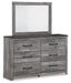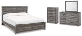 Details | B1290B4: Includes king panel headboard/footboard and rails, Made with engineered wood (MDF/particleboard/plywood) and decorative laminate for the right balance of affordability and durability, Smoky gray finish over replicated oak grain with authentic touch, Decorative laminate replicates natural or man-made material surfaces with consistent color, pattern and texture, Foundation/box spring required, sold separately, Mattress available, sold separately, Assembly required, Bed is compatible with an adjustable base, B1290B1: Includes dresser and mirror, Made with engineered wood (MDF/particleboard/plywood) and decorative laminate for the right balance of affordability and durability, Two-tone look: smoky gray replicated oak grain accented with rustic charcoal finish; replicated oak grain with authentic touch, Charcoal finish over replicated oak grain with authentic touch, Decorative laminate replicates natural or man-made material surfaces with consistent color, pattern and texture, Large-scaled handles in a dark hue, 6 smooth-gliding drawers with dovetail construction, Drawer interiors are lined with a faux linen laminate for a clean, finished look, Framed front and pilasters, Mirror attaches to back of dresser; can also be mounted on wall horizontally or vertically, Safety is a top priority, clothing storage units are designed to meet the most current standard for stability, ASTM F 2057 (ASTM International), Drawers extend out to accommodate maximum access to drawer interior while maintaining safety, Assembly required, B1290-44: Expertly made with engineered wood (MDF/particleboard/plywood) for the right balance of affordability and durability, Decorative laminate replicates natural or man-made material surfaces with consistent color, pattern and texture, Two-tone look: smoky gray replicated oak grain accented with rustic charcoal finish; replicated oak grain with authentic touch, Large-scaled handles in a dark hue, 4 smooth-gliding drawers with dovetail construction, Drawer interiors are lined with a faux linen laminate for a clean, finished look, Framed front and pilasters, Safety is a top priority, clothing storage units are designed to meet the most current standard for stability, ASTM F 2057 (ASTM International), Drawers extend out to accommodate maximum access to drawer interior while maintaining safety, Assembly required, | |