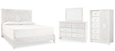 Paxberry King Panel Bed with Mirrored Dresser and Chest