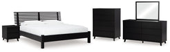 Details B1013B6: Includes headboard, footboard with rails and roll slats, Made with engineered wood (MDF/particleboard/plywood) and decorative laminate for the right balance of affordability and durability, Matte black finish with subtle replicated wood grain, Decorative laminate replicates natural or man-made material surfaces with consistent color, pattern and texture , Bed does not require a foundation/box spring , Mattress available, sold separately , Minor assembly required, B1013B11: Includes dresser and mirror, Made with engineered wood (MDF/particleboard/plywood) and decorative laminate for the right balance of affordability and durability, Matte black finish with subtle replicated wood grain, Decorative laminate replicates natural or man-made material surfaces with consistent color, pattern and texture, 6 smooth-gliding drawers, Drawer interiors are lined with a faux linen laminate for a clean, finished look, Integrated drawer pulls, Framed front and pilasters, Mirror attaches to back of dresser; can also be mounted on wall horizontally or vertically, Safety is a top priority, clothing storage units are designed to meet the most current standard for stability, ASTM F 2057 (ASTM International), Drawers extend out to accommodate maximum access to drawer interior while maintaining safety, Minor assembly required, B1013-345: Made with engineered wood (MDF/particleboard/plywood) and decorative laminate for the right balance of affordability and durability, Matte black finish with subtle replicated wood grain, Decorative laminate replicates natural or man-made material surfaces with consistent color, pattern and texture, 5 smooth-gliding drawers, Drawer interiors are lined with a faux linen laminate for a clean, finished look, Integrated drawer pulls, Framed front and pilasters, Safety is a top priority, clothing storage units are designed to meet the most current standard for stability, ASTM F 2057 (ASTM International), Drawers extend out to accommodate maximum access to drawer interior while maintaining safety, Minor assembly required, B1013-92: Made with engineered wood (MDF/particleboard/plywood) and decorative laminate for the right balance of affordability and durability, Matte black finish with subtle replicated wood grain, Decorative laminate replicates natural or man-made material surfaces with consistent color, pattern and texture, 2 smooth-gliding drawers, Drawer interiors are lined with a faux linen laminate for a clean, finished look, Integrated drawer pulls, Framed front and pilasters, USB and wireless charging options, Power cord included; UL Listed, Minor assembly required,