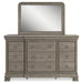 Details | B924B4: Includes panel headboard and sleigh footboard with rails, Made with hardwood solids, birch veneer and MDF substrate, Light gray finish enhances the natural wood grain, Foundation/box spring required, sold separately, Mattress available, sold separately, Assembly required, B924B1: Includes dresser and mirror, Made with hardwood solids, birch veneer and MDF substrate, Light gray finish enhances the natural wood grain, Ring pull hardware, 9 drawers with fully finished interiors, dovetail construction and ball-bearing side glides, Jewelry drawer conveniently located in the center valance, Mirror attaches to back of dresser, | |