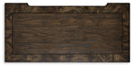 Details | B947B4: Includes upholstered panel headboard, upholstered panel footboard and panel rails, Made with hardwood solids, oak and ash swirl veneers, MDF substrates and cast resin components, Dark brown finish, Polyester upholstery with button tufting, Foundation/box spring required, sold separately, Mattress available, sold separately, Assembly required, B947B1: Includes dresser and mirror, Made with hardwood solids, oak and ash swirl veneers, MDF substrates and cast resin components, Dark brown finish, 6 smooth-gliding drawers with dovetail construction (top drawer felt lined), Drawer pulls with antiqued goldtone finish, Mirror attaches to back of dresser, B947-46: Made with hardwood solids, oak and ash swirl veneers, MDF substrates and cast resin components, Dark brown finish, 5 smooth-gliding drawers with dovetail construction (top drawer felt lined), Drawer pulls with antiqued goldtone finish, B947-93: Made with hardwood solids, oak and ash swirl veneers, MDF substrates and cast resin components, Dark brown finish, 2 smooth-gliding drawers with dovetail construction (top drawer felt lined), Pull-out tray behind bottom drawer, Drawer pulls with antiqued goldtone finish, 110V power supply with dual USB charging ports, Power cord included; UL Listed, | |