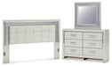 Zyniden King Upholstered Panel Headboard with Mirrored Dresser