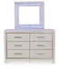 Zyniden King Upholstered Panel Headboard with Mirrored Dresser and Chest