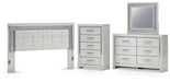 Details B2114-58: Made with engineered wood (MDF/particleboard/plywood) and decorative laminate for the right balance of affordability and durability, Silvertone pearl finished faux gator, Decorative laminate replicates natural or man-made material surfaces with consistent color, pattern and texture, Faceted chrome-tone details, Faux crystal tufted silver upholstery with faux alligator effect, Glitter inlays, LED lighting with remote for color and brightness options; included holder discreetly keeps remote accessible, ¼" bolts (not included) are needed to attach headboard to your existing bed frame, Minor assembly required, B2114B1: Includes dresser and mirror, Made with engineered wood (MDF/particleboard/plywood) and decorative laminate for the right balance of affordability and durability, Silvertone pearl finished faux gator, Decorative laminate replicates natural or man-made material surfaces with consistent color, pattern and texture, Handles with faux crystal accents, 6 smooth-gliding drawers , Drawer interiors are lined with a faux linen laminate for a clean, finished look, Faceted chrome-tone details, Mirror includes LED lighting with remote for color and brightness options, Mirror attaches to back of dresser; can also be mounted on wall horizontally or vertically , Safety is a top priority, clothing storage units are designed to meet the most current standard for stability, ASTM F 2057 (ASTM International), Drawers extend out to accommodate maximum access to drawer interior while maintaining safety, Minor assembly required, B2114-46: Made with engineered wood (MDF/particleboard/plywood) and decorative laminate for the right balance of affordability and durability, Silvertone pearl finished faux gator, Decorative laminate replicates natural or man-made material surfaces with consistent color, pattern and texture, Handles with faux crystal accents, 5 smooth-gliding drawers, Drawer interiors are lined with a faux linen laminate for a clean, finished look, Faceted chrome-tone details, Safety is a top priority, clothing storage units are designed to meet the most current standard for stability, ASTM F 2057 (ASTM International), Drawers extend out to accommodate maximum access to drawer interior while maintaining safety, Minor assembly required,