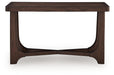 Master the art of casual contemporary design with the Korestone sofa table. Its softly rounded wood frame top pairs perfectly with an eye-catching double wishbone base and a rich brown finish for a decidedly here and now vibe. Talk about the ideal spot for decor, plants and more.