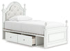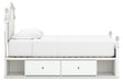 Fit for a princess. This twin upholstered panel storage bed’s crisp matte white finish pairs with charming ornate beading and sumptuous button-tufted upholstery—perfect for your girly girl. Spacious storage drawers neatly tuck away bedroom essentials. Decorative ball tops and multicolored LED lighting in the headboard are the crowning touches to make your little one feel like royalty.