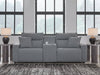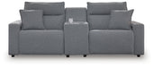 Details | Includes 3 modular pieces: left-arm facing power recliner, console and right-arm facing power recliner, "Left-arm" and "right-arm" describe the position of the arm when you face the piece, Versatile modular pieces fit together in a variety of configurations, One-touch power control with adjustable positions, Easy View™ adjustable headrest and zero-draw USB port, Zero-draw technology only consumes power when the USB receptacle is in use, Corner-blocked frame with metal reinforced seat, Attached back and seat cushions; high-quality foam cushions wrapped in poly fiber, Polyester upholstery; Next-Gen Nuvella™ is a family-friendly fabric that is soft, easy to clean, stain-resistant and durable, Clean fabric with mild soap and water, let air dry; for stubborn stains, use a solution of 4 oz. bleach to 28 oz. water, Throw pillows with easy-to-remove zippered covers for machine washing; pillows with soft polyfill, Console with plexiglass top and 2 cup holders, Zero wall recliner design requires minimal space between wall and chair back, Power cord included; UL Listed | |