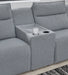 Details | Includes 6 modular pieces: left-arm facing power recliner, power armless recliner, armless chair, console, wedge and right-arm facing power reclining back chaise, "Left-arm" and "right-arm" describe the position of the arm when you face the piece, Versatile modular pieces fit together in a variety of configurations, One-touch power control with adjustable positions, Easy View™ adjustable headrest and zero-draw USB port, Zero-draw technology only consumes power when the USB receptacle is in use, Corner-blocked frame with metal reinforced seat; attached seat and back cushions; high-quality foam cushions wrapped in poly fiber, Polyester upholstery; Next-Gen Nuvella™ is a family-friendly fabric that is soft, easy to clean, stain-resistant and durable, Clean fabric with mild soap and water, let air dry; for stubborn stains, use a solution of 4 oz. bleach to 28 oz. water, Throw pillows with easy-to-remove zippered covers for machine washing; pillows with soft polyfill, Console with plexiglass top and 2 cup holders, Zero wall recliner design requires minimal space between wall and chair back, Power cord included; UL Listed | |