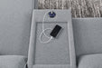 Details Includes 7 modular pieces: left-arm facing power recliner, power armless recliner, armless chair, 2 consoles with audio systems, wedge and right-arm facing power recliner, "Left-arm" and "right-arm" describe the position of the arm when you face the piece, Versatile modular pieces fit together in a variety of configurations, One-touch power control with adjustable positions, Easy View™ adjustable headrest and zero-draw USB port, Zero-draw technology only consumes power when the USB receptacle is in use, Corner-blocked frame with metal reinforced seat, Attached seat and back cushions; high-quality foam cushions wrapped in poly fiber, Polyester upholstery; Next-Gen Nuvella™ is a family-friendly fabric that is soft, easy to clean, stain-resistant and durable, Clean fabric with mild soap and water, let air dry; for stubborn stains, use a solution of 4 oz. bleach to 28 oz. water, Throw pillows with easy-to-remove zippered covers for machine washing; pillows with soft polyfill, Console with plexiglass top; built-in audio sound system with wireless connectivity; audio controls located on console; USB charging, Zero wall recliner design requires minimal space between wall and chair back, Power cord included; UL Listed