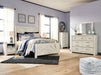 Details B331B6: Includes headboard, footboard and rails, Made of engineered wood (MDF/particleboard) and decorative laminate, Wispy white finish over replicated oak grain with authentic touch, Foundation/box spring required, sold separately, Mattress available, sold separately, Assembly required, Bed is compatible with an adjustable base, B331B1: Includes dresser and mirror, Made of engineered wood (MDF/particleboard) and decorative laminate, Wispy white finish over replicated oak grain with authentic touch, Brushed nickel-tone hardware with black edging, 7 smooth-gliding drawers (lined with faux linen laminate), Mirror attaches to back of dresser, Safety is a top priority, clothing storage units are designed to meet the most current standard for stability, ASTM F 2057 (ASTM International), Drawers extend out to accommodate maximum access to drawer interior while maintaining safety, Assembly required, B331-46: Made of engineered wood (MDF/particleboard) and decorative laminate, Wispy white finish over replicated oak grain with authentic touch, Brushed nickel-tone hardware with black edging, 5 smooth-gliding drawers (lined with faux linen laminate), Safety is a top priority, clothing storage units are designed to meet the most current standard for stability, ASTM F 2057 (ASTM International), Drawers extend out to accommodate maximum access to drawer interior while maintaining safety, Assembly required, B331-91: Made of engineered wood (MDF/particleboard) and decorative laminate, Wispy white finish over replicated oak grain with authentic touch, 1 storage cubby, 1 smooth-gliding drawer (lined with faux linen laminate), Brushed nickel-tone hardware with black edging, Slim-profile USB charging station, Power cord included; UL Listed, Assembly required,