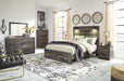Drystan Queen Panel Bed with 2 Storage Drawers with Mirrored Dresser and Chest