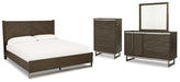 Clean lines lend sophistication and structure to this bedroom package. A complex rich grayish brown finish creates visual interest and adds to the contemporary vibe.