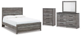 Details | B1290B2: Includes queen panel headboard/footboard and rails, Made with engineered wood (MDF/particleboard/plywood) and decorative laminate for the right balance of affordability and durability, Smoky gray finish over replicated oak grain with authentic touch, Decorative laminate replicates natural or man-made material surfaces with consistent color, pattern and texture, Foundation/box spring required, sold separately, Mattress available, sold separately, Assembly required, Bed is compatible with an adjustable base, B1290B1: Includes dresser and mirror, Made with engineered wood (MDF/particleboard/plywood) and decorative laminate for the right balance of affordability and durability, Two-tone look: smoky gray replicated oak grain accented with rustic charcoal finish; replicated oak grain with authentic touch, Charcoal finish over replicated oak grain with authentic touch, Decorative laminate replicates natural or man-made material surfaces with consistent color, pattern and texture, Large-scaled handles in a dark hue, 6 smooth-gliding drawers with dovetail construction, Drawer interiors are lined with a faux linen laminate for a clean, finished look, Framed front and pilasters, Mirror attaches to back of dresser; can also be mounted on wall horizontally or vertically, Safety is a top priority, clothing storage units are designed to meet the most current standard for stability, ASTM F 2057 (ASTM International), Drawers extend out to accommodate maximum access to drawer interior while maintaining safety, Assembly required, B1290-44: Expertly made with engineered wood (MDF/particleboard/plywood) for the right balance of affordability and durability, Decorative laminate replicates natural or man-made material surfaces with consistent color, pattern and texture, Two-tone look: smoky gray replicated oak grain accented with rustic charcoal finish; replicated oak grain with authentic touch, Large-scaled handles in a dark hue, 4 smooth-gliding drawers with dovetail construction, Drawer interiors are lined with a faux linen laminate for a clean, finished look, Framed front and pilasters, Safety is a top priority, clothing storage units are designed to meet the most current standard for stability, ASTM F 2057 (ASTM International), Drawers extend out to accommodate maximum access to drawer interior while maintaining safety, Assembly required, | |