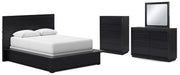Londer Queen Panel Bed with Mirrored Dresser and Chest