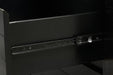 Details | B768B2: Includes headboard, footboard and rails, Made with pine solids, veneers and engineered wood substrate, Textured black wood stain with waxy topcoat, Extra wide rails for a bench-like wrap around, Foundation/box spring required, sold separately, Mattress available, sold separately, Assembly required, B768B1: Includes dresser and mirror, Made with pine solids, veneers and engineered wood substrate, Textured black wood stain with waxy topcoat, Hardware-less design, 6 drawers with fully finished interiors, dovetail construction and ball-bearing side glides (top drawers felt lined), Mirror attaches to back of dresser, B768-46: Made with pine solids, veneers and engineered wood substrate, Textured black wood stain with waxy topcoat, Hardware-less design, 5 drawers with fully finished interiors, dovetail construction and ball-bearing side glides (top drawers with felt-lined bottoms), | |