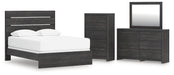 Hollivern Queen Panel Bed with Mirrored Dresser and Chest
